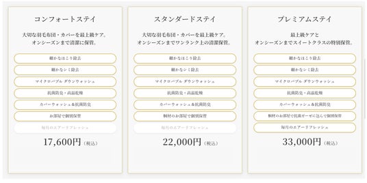 いずれのコースも、洗浄前には羽毛布団の縫い目のホコリやシミ汚れを丁寧にチェックし、洗浄後には抗菌防臭加工を施します。ロングステイコースでは空調管理した部屋で一枚ずつ個別に保管し、来冬には最適な状態でお手元にお届けするため、夏場の収納問題と冬の快適な睡眠を同時に解決することが可能です。