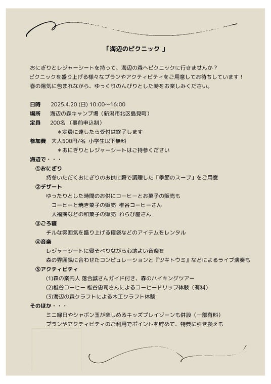 2.イベント名 海辺のピクニック(添付のチラシ参照)