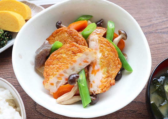 商品特徴:キャベツ、ごぼう、人参、玉ねぎの4種の野菜が入った、野菜の美味しさと魚の旨味が感じられるさつま揚です。