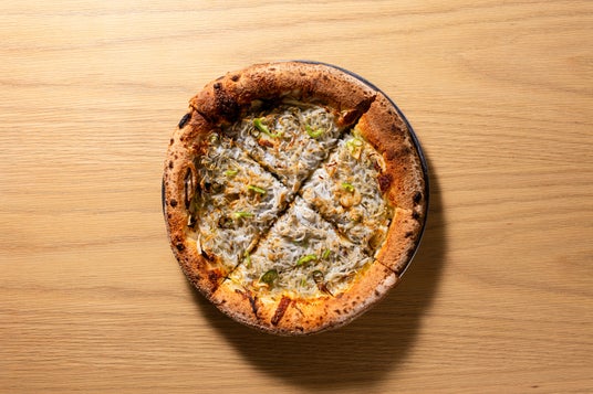 青唐辛子の辛みと、カラスミの旨みが絶妙なビアンカピッツァ。