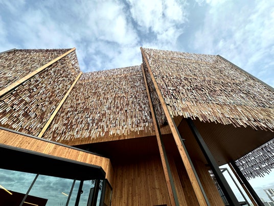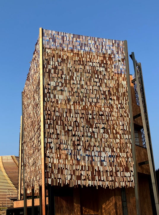 このパビリオンには、日本の復興を象徴する福島県産の建築資材を採用。単なる建築物ではなく、未来へ向けた希望のメッセージを込めた空間となっています。