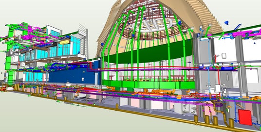 従来を超える複雑な設備システムと膨大な施工量に対応するため、レブロ(3DCAD)を駆使した設備設計を導入。シミュレーションを活用することで、施工現場の精度を向上させ、緻密な工程管理を可能にしました。