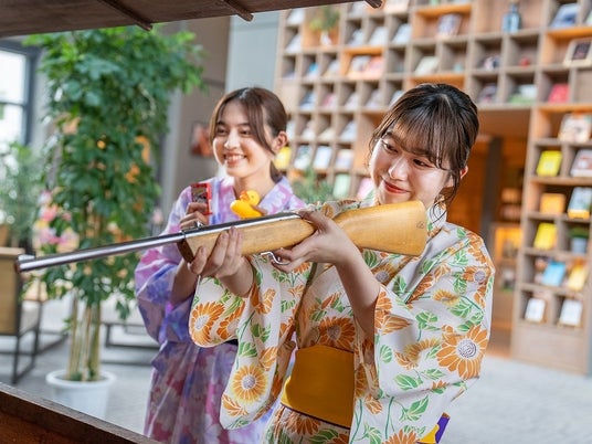 おふろcafe yusaでは、2024年7月1日(月)から8月31日(土)の期間で、山形を代表する夏祭り「山形花笠まつり」がテーマの夏イベント「ゆさ花笠縁日夏まつり」を開催中です。同イベントは、山形花笠まつりを応援、一緒に盛り上げることを目的にしています。期間中は、山形花笠まつりをはじめ“夏祭り”にちなんだコンテンツを提供。カフェレストランでは、「花笠ピザ」や山形名物「冷やしラーメン」や「肉そば」など全10種類のメニューに加え、山形のフルーツを使用した「スイーツ串」や1日数量限定「小玉すいかのかき氷」などの屋台メニューをご用意。サウナガーデンでは、ミス花笠OGによる花笠を使用した熱波体験が楽しめる「花笠サウナ」を実施し、夏限定フレーバーのデトックスウォーターもご用意しております。その他、色浴衣の貸し出しも実施いたします。館内は、果樹王国山形のフルーツカラーのランタンや風車で装飾され、夏祭りをイメージさせる雰囲気に。お盆期間中の8月10日(土)~15日(木)は、大人も子どもも楽しめる縁日コーナーも設置、館内全体が活気ある雰囲気に彩られます。どこでくつろいでいても夏祭りの雰囲気を楽しむことができるイベントです。