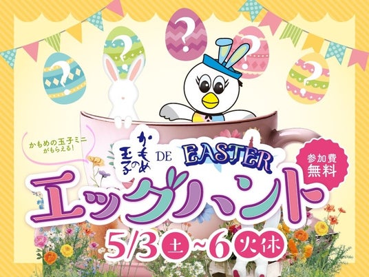岩手県の銘菓「かもめの玉子」とコラボレーションしたエッグハントイベントを開催。施設内3カ所のひらがなを探してクリアしたお客様に、特別なケースに入った「かもめの玉子ミニ」をプレゼントします。(5/3(土・祝)~6(火・休))