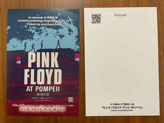 4/24(木)~4/27(日)の期間でTOHOシネマズ日比谷ほかでの限定上映されるピンク・フロイド伝説のライヴ・パフォーマンス『ピンク・フロイド・アット・ポンペイ』の公開を記念して、英国ロック・グッズの祭典“THE BRITISH ROCK”で映画のオリジナルポストカードがもらえる公開記念キャンペーンの実施が決定しました。また、シネマシティでは4/24(木)19時の回に立川直樹(ディレクター/プロデューサー)のトークイベントが開催されます。