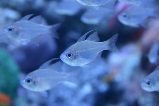 ▲特徴的な半透明な体に青色が映えるイトヒキテンジクダイ