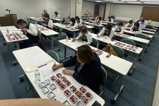 一般社団法人 日本野菜ソムリエ協会(東京都中央区、代表理事:福井栄治、以下当協会)は、2025年4月9日(水)に、農産物のさらなる価値向上を目指す青果物の品評会イベントとして「第4回全国トマト選手権」を開催しました。部門はラージ部門とミディアム部門の2部門。ミディアム部門には全国各地の産地から48品のエントリーをいただき、33名の評価員である野菜ソムリエたちが商品名や産地・生産者情報などをすべて伏せ、そのおいしさを食味のみで審査し、評価員全員の合計点数によって各賞を決定しました。