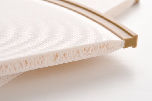 まな板の内側をスポンジ状の気泡にすることで、弾力性をアップ!程よく沈み込み、まるで桐のまな板で食材を切った時のような刃あたりの良さと、包丁に優しい切り心地を実現することができました。