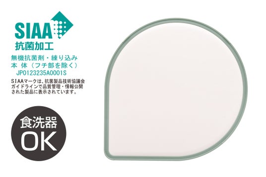 本品は、こだわりの「しずく型」の独自形状により、食材をカットするためのスペースと、切った後の食材を端に寄せて一時置きできるスペースを両方確保した、作業効率の良いまな板ができました。