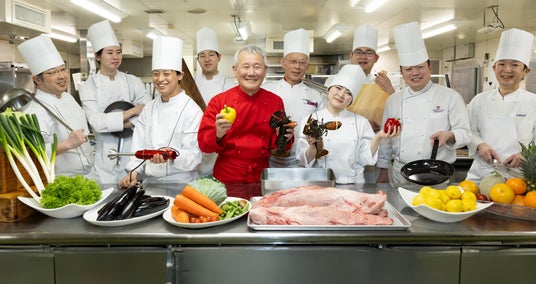 田中 智(総料理長)/大森 一憲(宴会料理長兼副総料理長)/森川 幸夫(レストラン統括料理長兼副総料理長)/宗田 伸司(宴会和食担当料理長)/島津 隆秀(日本料理雲海料理長)/小林 徹(中国料理桃李料理長)/元安 誉雄(オールデイダイニングフリュティエ料理長)/杉本 亮(中国料理桃李副料理長)/箕浦 孝(鉄板焼愛宕料理長)/宮本 篤(ぺストリーシェフ)