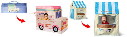 「テントに入る×テントであそぶ」で、たのしさ倍増のお店屋さんごっこシリーズ。さぁ、アイスクリーム屋さんはじめます!持ち運びに便利なバッグ付き