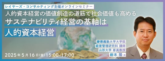 株式会社レイヤーズ・コンサルティング(東京都品川区、代表取締役CEO:杉野 尚志、以下:レイヤーズ)は、オンラインセミナー『人的資本経営の価値創造の道筋で社会価値も高める サステナビリティ経営の基軸は人的資本経営』を2025年5月16日(金)に開催することを発表いたします。