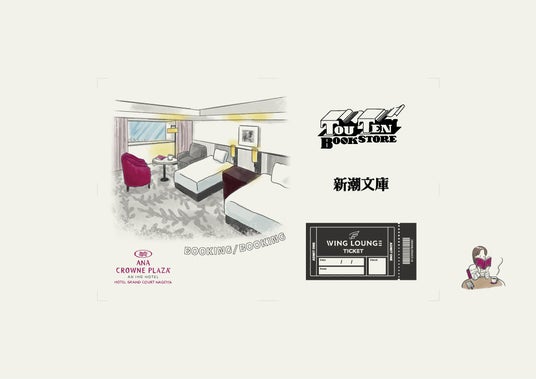 ANAクラウンプラザホテルグランコート名古屋(名古屋市中区、執行役員総支配人:石井 孝治)は、"サンジョルディの日"に当たる2025.4.23(水)から、新宿泊プラン「BOOKING/BOOKING」("ブック"キング/ブッキング)の販売を開始する。新潮社の「新潮文庫」から、ホテル徒歩圏内にあり"本好き"や"本屋好き"から絶大な支持を集める「TOUTEN BOOKSTORE」オーナー選書5種の文庫の中から好きなタイトルをチェックイン時に選びオリジナルカバーをかけてプレゼントされる。さらにホテル最上階フロアに位置するウィングラウンジ利用チケットもプレゼントされ、ラウンジやお部屋でさっそく新潮文庫を愉しめる。