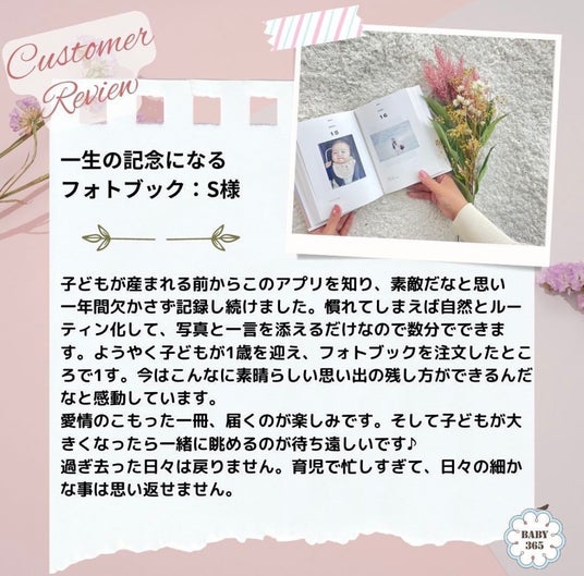 総製本数が15,000冊を超えることで、1日1枚の写真と144文字で日記形式に綴られた500万日分以上のお子様の成長記録や親御様のお子様へのメッセージをBABY365のフォトブックとして残していただくき、とても嬉しく思います。今後もご家族の思い出の1冊をお届けし続けられるよう、ユーザー様の声を真摯に受け止めながらサービス向上に努めてまいります。