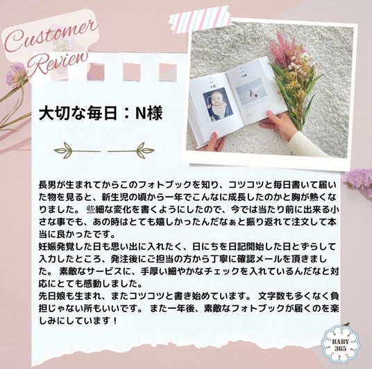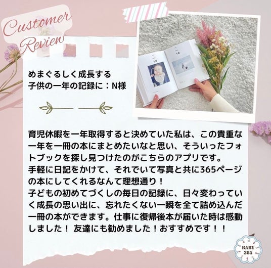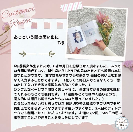多くのお客様からたくさんのレビューをいただいており、今回感謝の気持ちを込めて「【BABY365】総製本数15,000冊!ありがとうキャンペーン」を開催いたします。