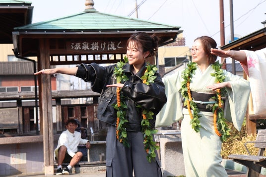 踊りを教わる中川絵美里さんと見守る酒井さん