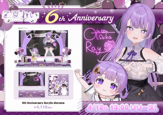 クリエイターの商品企画から、製作・販売まで行う株式会社メディアリンクは、乙夏れいの公式オンラインストアにて、6周年および新3Dお披露目を記念し、娘のれいかちゃんと共にステージに立っているジオラマアクリルスタンドを4月12日13:00にリリースしました。