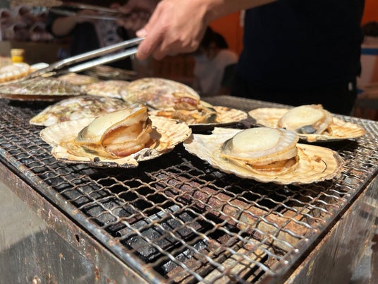 三陸イカ焼き、イイダコ串、ワカサギ天ぷら、イカの天ぷら、十和田バラ焼き