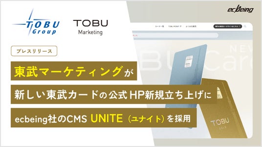 株式会社ecbeing (イーシービーイング 本社:東京都渋谷区、代表取締役社長:林 雅也、以下「弊社」)の提供するメディアコマースCMS「UNITE(ユナイト)」が、東武マーケティング株式会社(本社:東京都豊島区、代表取締役社長:鈴木 熊野、以下「東武マーケティング社」)の提供するWebサイト「新しい東武カードの公式HP」の新規立ち上げに採用されたことを発表いたします。