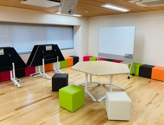 また、フローリング敷の小上がりとなっており、移動させやすいキューブソファとキャスター付きテーブルにより多様な学びの形に対応しています。