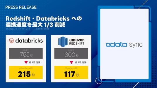 2025年4月15日、リアルタイムデータ連携コネクタを提供するCData Software Japan 合同会社(本社:アメリカノースカロライナ州、日本オフィス:宮城県仙台市、代表社員 職務執行者:疋田 圭介、以下CData)は、400種類以上のSaaS・DBデータをノーコードでETL / ELT可能な『CData Sync』の新バージョン、V25.1をリリースしました。本バージョンでは、多くのお客様から要望をいただいていたkintone へのリバースETL 対応に加え 、Amazon Redshift およびDatabricks への連携パフォーマンスの大幅な向上や大規模利用を支援するワークスペース機能の搭載、拡張型CDC(変更データキャプチャ)機能の対象DB 拡充(DB2、IBM Informix 対応)など、多くの機能強化を行っています。これにより、オンプレミス・クラウド双方にまたがる複雑なデータ連携ニーズに対し、より高速かつ安定的に、そして管理しやすく対応できるアップデートとなっています。
