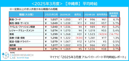 『2025年3月度 アルバイト・パート平均時給レポート』