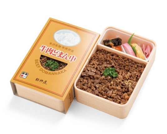 山形県産米「どまんなか」を炊きあげたごはんの上に、牛そぼろと牛肉煮をのせた牛丼風のお弁当です