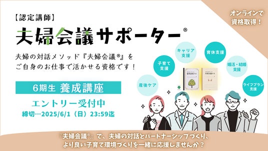 「未来を担う子どもたちに、より良い家庭環境を創り出していける夫婦であふれる社会を目指す」をビジョンに、2015年の創業以来、夫婦の対話メソッド『夫婦会議(R)』を展開するLogista株式会社(福岡県福岡市、共同代表 長廣百合子(妻)・長廣遥(夫))は、認定講師「夫婦会議サポーター(R)︎」6期生 養成講座のエントリーを開始しました。