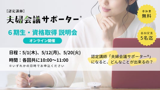 ※認定講師「夫婦会議サポーター」6期生の養成講座エントリーに際して、資格取得説明会への参加は必須ではありません。