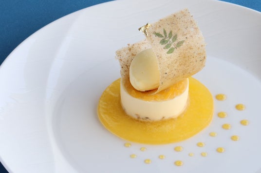 日本最古のスパイスといわれている山椒を使用し、クリームチーズと柑橘の組み合わせで爽やかな香り立つデザートに仕上げました。山椒のオパリーヌと滑らかなアイスクリームとの相性をお楽しみください。