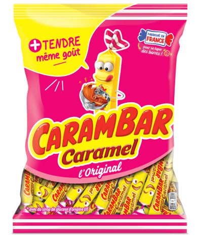キャランバー キャラメルキャンディー1954年の誕生以来、子どもから大人まで親しまれる、最もポピュラーなお菓子の一つであるスティック型のキャラメルです。包装紙にはフレンチジョークが書き込まれており、翻訳してフランス文化も楽しめます。