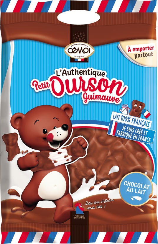 フランスのポピュラーなチョコレート製品を製造する「セモア」社の、伝統的なお菓子ギモーヴ(マシュマロ)です。1962年からレシピ変更されていない国民的お菓子で、クマやハリネズミの形をしたマシュマロにチョコレートをかけています。