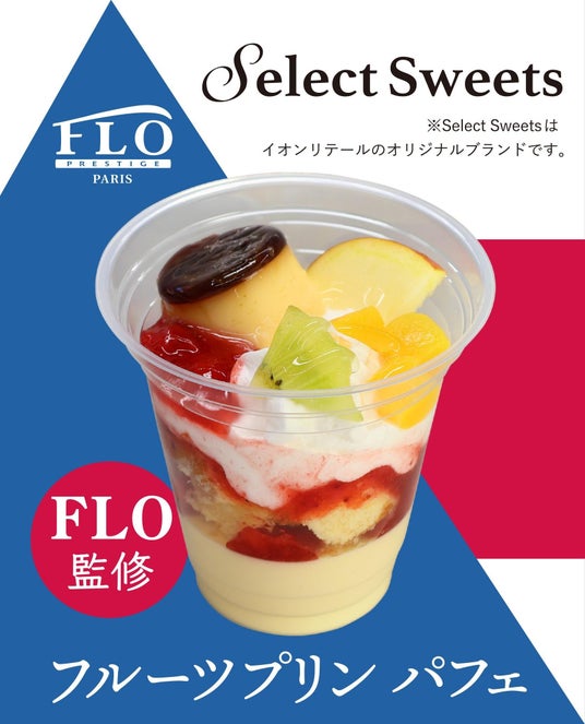 「FLO PRESTIGE PARIS」監修スイーツ1886年パリで誕生した人気のスイーツ専門店「フロプレステージュ」監修スイーツです。代表商品ともいえるフルーツタルトを、暑い日も食べやすいパフェで再現しています。バニラペースト入りミルクムースにスポンジダイスやイチゴソースを重ね、プリンや、りんご、キウイなどの果物をトッピングしています。(「イオンリカー&ビューティー川西店」「イオンエクスプレス上乃木店」「イオン津ノ井店」「イオンスタイルおおとり」「イオンスタイル長原駅前」では取り扱いがありません)