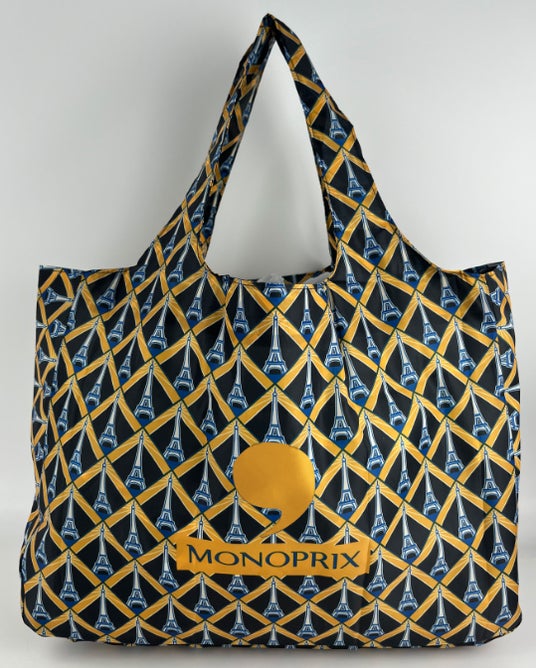 食品から生活雑貨まで幅広い商品を取り扱い、観光客にも人気のフランス発の総合スーパー「MONOPRIX(モノプリ)」で販売されているエコバッグです。パリジャン・パリジェンヌをはじめ、お土産としても人気が高く、軽くてコンパクトに収納できます。