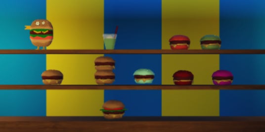 ハンバーガーをできるだけ多く撃ち倒し、高スコアを目指すシューティングゲーム。