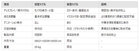 - 調整可能な設定項目が追加され、お客様のニーズに応じた皮むき設定ができるようになりました