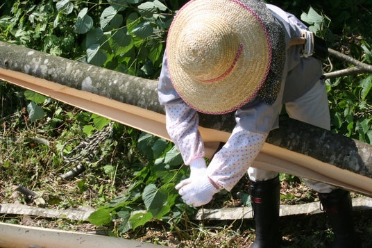 しな糸は、数ヶ月にわたる手仕事の積み重ねから生まれます。シナノキの樹皮を剥ぎ、煮て、干し、裂き、績み、撚りをかけて糸にする──すべてが人の手による繊細な工程です。