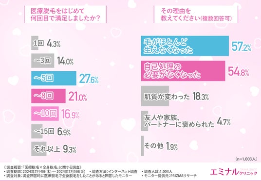 そこで今回、医療脱毛の「エミナルクリニック」は、医療脱毛で全身脱毛をしたことがある方を対象に、「医療脱毛×全身脱毛」に関する調査を実施しました。
