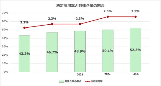 民間企業の法定雇用到達割合は未だ低水準(出典:厚生労働省「障害者雇用状況の集計結果」)