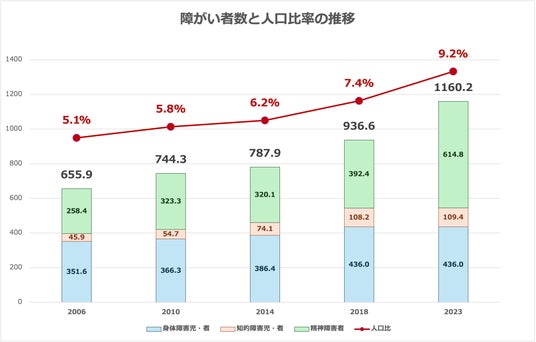 障がい者数は依然として増加傾向(厚生労働省:第28回「障害福祉サービス等報酬改定検討チーム(オンライン)」資料より作成)
