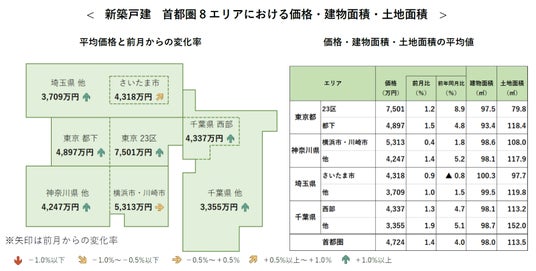 ●首都圏の新築戸建の平均価格は4,724万円で、前月比+1.4%と2カ月連続で上昇。前年同月比は+4.0%と7カ月連続で上昇。