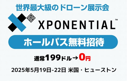 株式会社スペースワン(本社:福島県郡山市、代表取締役:小林康宏)は、米国テキサス州ヒューストンで開催される世界最大級のドローン展示会「XPONENTIAL 2025」へご来場を検討されている皆様に、通常199ドル(約28,000円相当)の入場料が無料になる特別招待URLをご提供いたします。