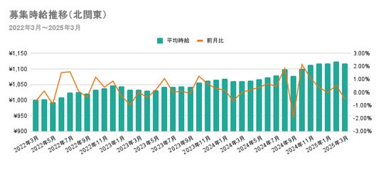 北関東エリアにおける、2022年3月から2025年3月まで3年間の募集時給を分析します。