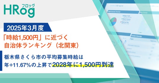 分析用求人ビッグデータを提供する、株式会社フロッグ(所在地:東京都千代田区、代表取締役:阪野 香子、以下「当社」)は、「2025年3月度 『時給1,500円』に近づく自治体ランキング(北関東)」を発表しました。