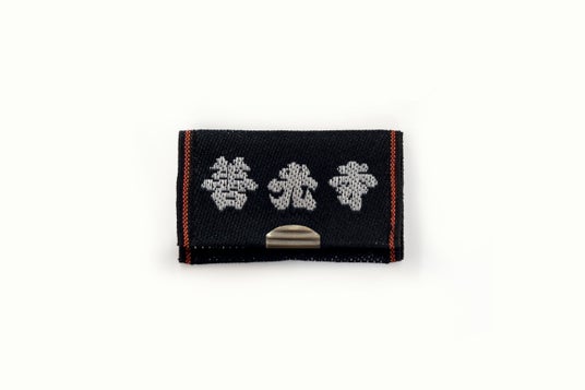 畳縁を使って作られた「高田織物」によるビームス ジャパン別注のお賽銭入れに、善光寺山門に掲げられる「鳩字の額」をNFTにして入れたハードウェアウォレット搭載の「善光寺 スペシャルウォレット」