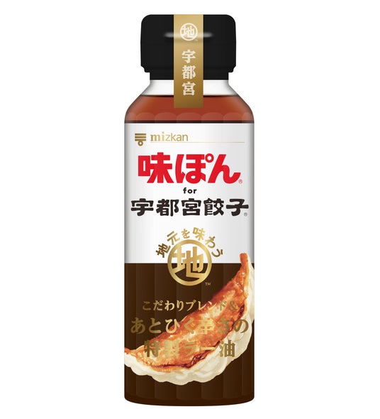 おなじみの「味ぽん」をベースに、ニラやしょうがの香味感のある「宇都宮餃子」をとにかく美味しく楽しめるような、お酢やしょうゆ、かんきつ果汁を吟味してブレンドしました。唐辛子・黒胡椒・山椒を使用した特製ラー油のあとひく辛さもお楽しみください。