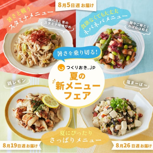 手作りおかずの宅配サービス「つくりおき.jp」を運営する株式会社Antway(所在地:東京都千代田区、代表取締役社長CEO:前島 恵)は、2024年7月につくりおき.jpの累計提供食数が1,400万食を突破したことをお知らせします(前年同月比+68%)。今後はさらなるお客様体験の向上を目指し、各種企画を強化してまいります。その一環として、今年8月には「暑さを乗り切る!夏の新メニューフェア」を開催する予定です。