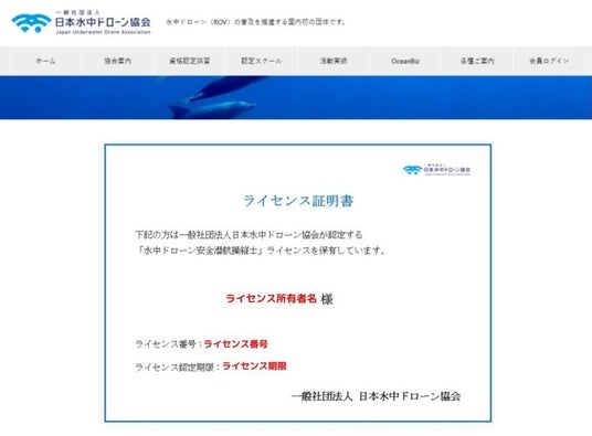 一般社団法人日本水中ドローン協会(所在地:東京都台東区 代表理事:小林康宏 事務局運営:株式会社スペースワン)は、同協会が認定する技能証明「水中ドローン安全潜航操縦士」ライセンスの照会機能を公式ウェブサイト上にて一般公開いたしました。