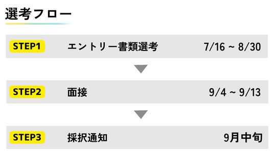 エントリーの内容にて書類選考をさせていただきます