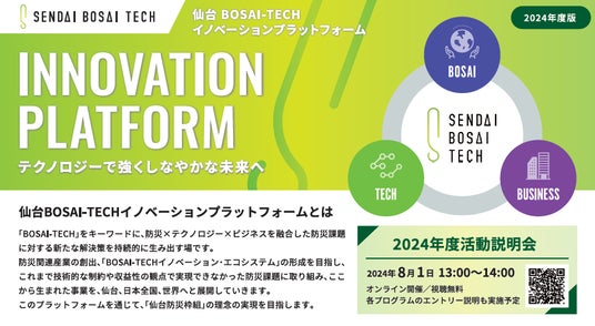 仙台市では、産学官金連携による防災関連分野の新たな製品・サービスの開発を支援するとともに、「仙台防災枠組」が掲げる世界の災害リスク削減への貢献を目指す「仙台市BOSAI-TECHイノベーション創出促進事業」を実施しています。今年度活動が本格的にスタートするにあたり、活動説明会をオンラインで開催いたします。